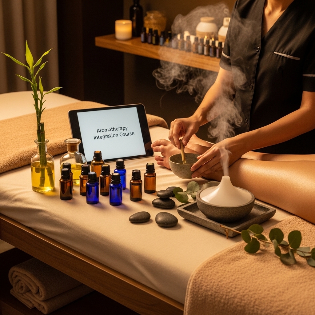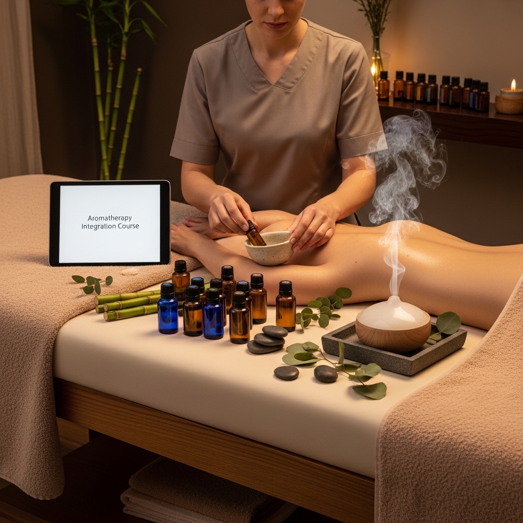 A richly detailed self-paced digital course teaching spa therapists how to incorporate essential oils and aromatherapy principles into massage, facial, and body treatments for enhanced therapeutic outcomes and elevated client experiences. Modules cover essential oil chemistry and safety profiles, carrier oil selection for different skin types and treatment goals, aroma blending principles for relaxation, invigoration, and emotional balance, integration techniques for Swedish, deep tissue, and hot stone massage, aromatic facial treatment protocols, diffusion strategies for treatment room atmosphere management, and client consultation frameworks for identifying aromatic preferences and contraindications. Built for spa therapists expanding their modality offerings, spa managers developing signature aromatic treatment menus, and wellness practitioners who want to add a scientifically grounded aromatherapy dimension to their existing services that deepens client relaxation and differentiates their practice.