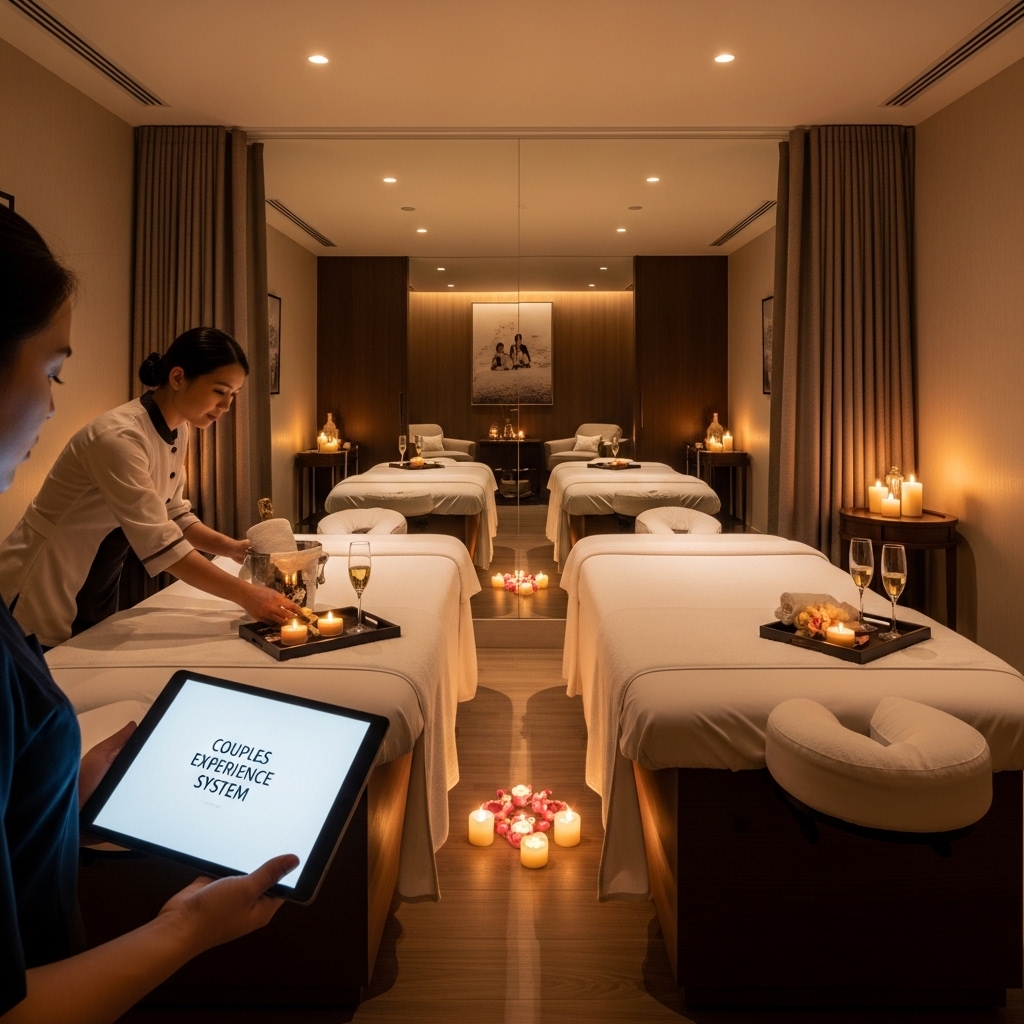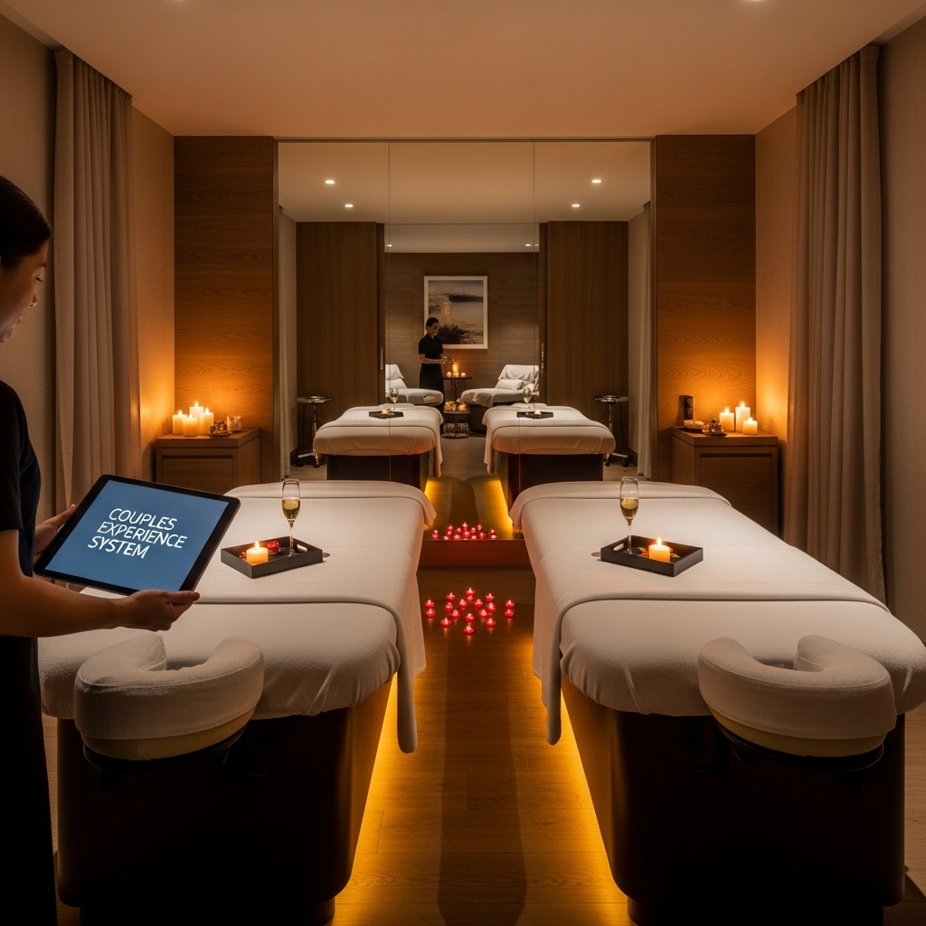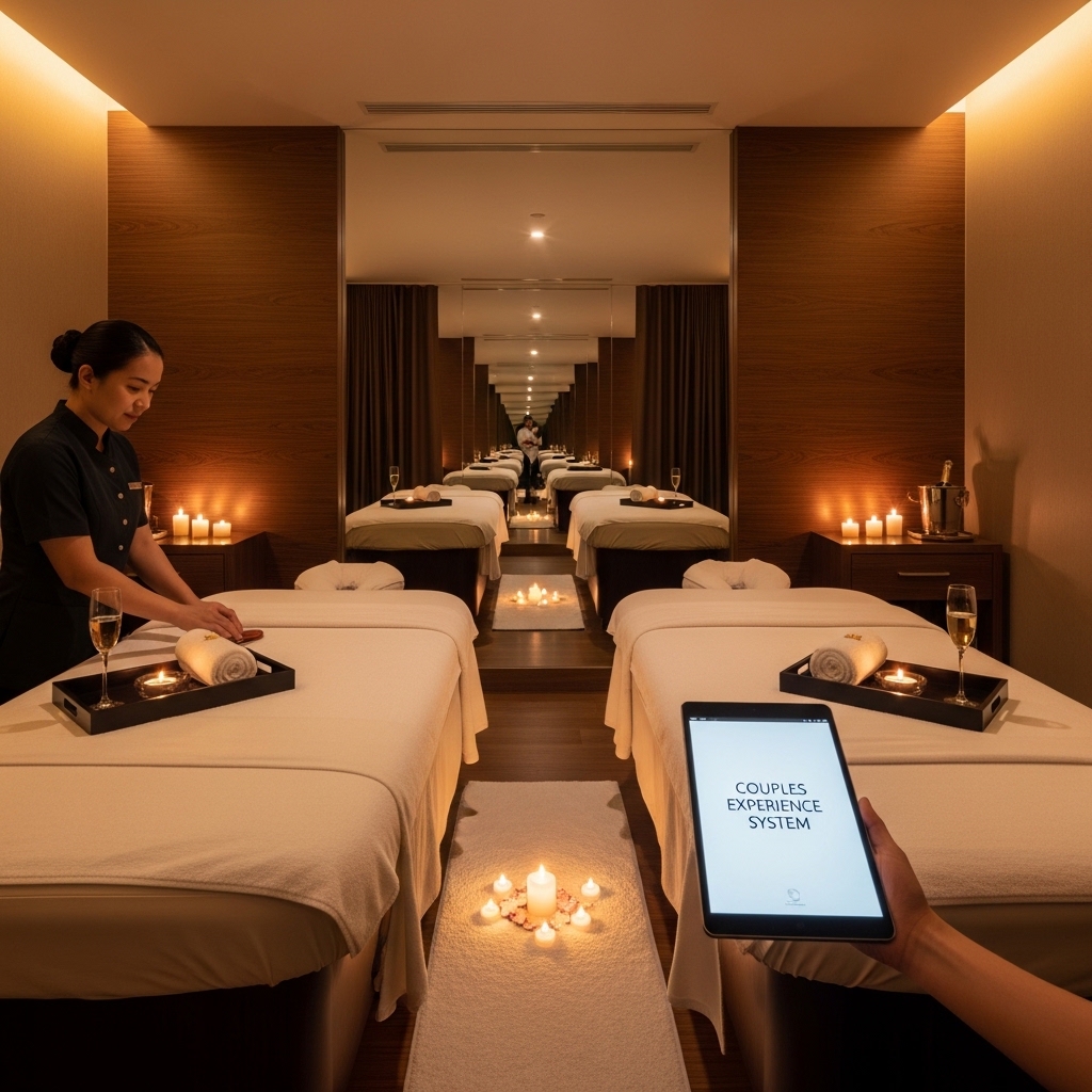 A thoughtfully designed digital system for creating memorable couples and group spa experiences that command premium pricing and generate enthusiastic word-of-mouth referrals. Covers treatment room configuration for simultaneous services, synchronized treatment timing protocols, complementary service pairing strategies, welcome ritual and closing ceremony design, add-on experience options including champagne service, private relaxation lounge access, and keepsake elements, group booking management logistics for bridal parties, corporate teams, and milestone celebrations, and package pricing structures that increase per-person revenue while offering perceived value. Designed for spa managers and experience designers who recognize that couples and group bookings represent the highest revenue-per-hour opportunity in most spas and want to create structured, repeatable premium experiences that transform ordinary visits into extraordinary occasions clients remember and recommend.
